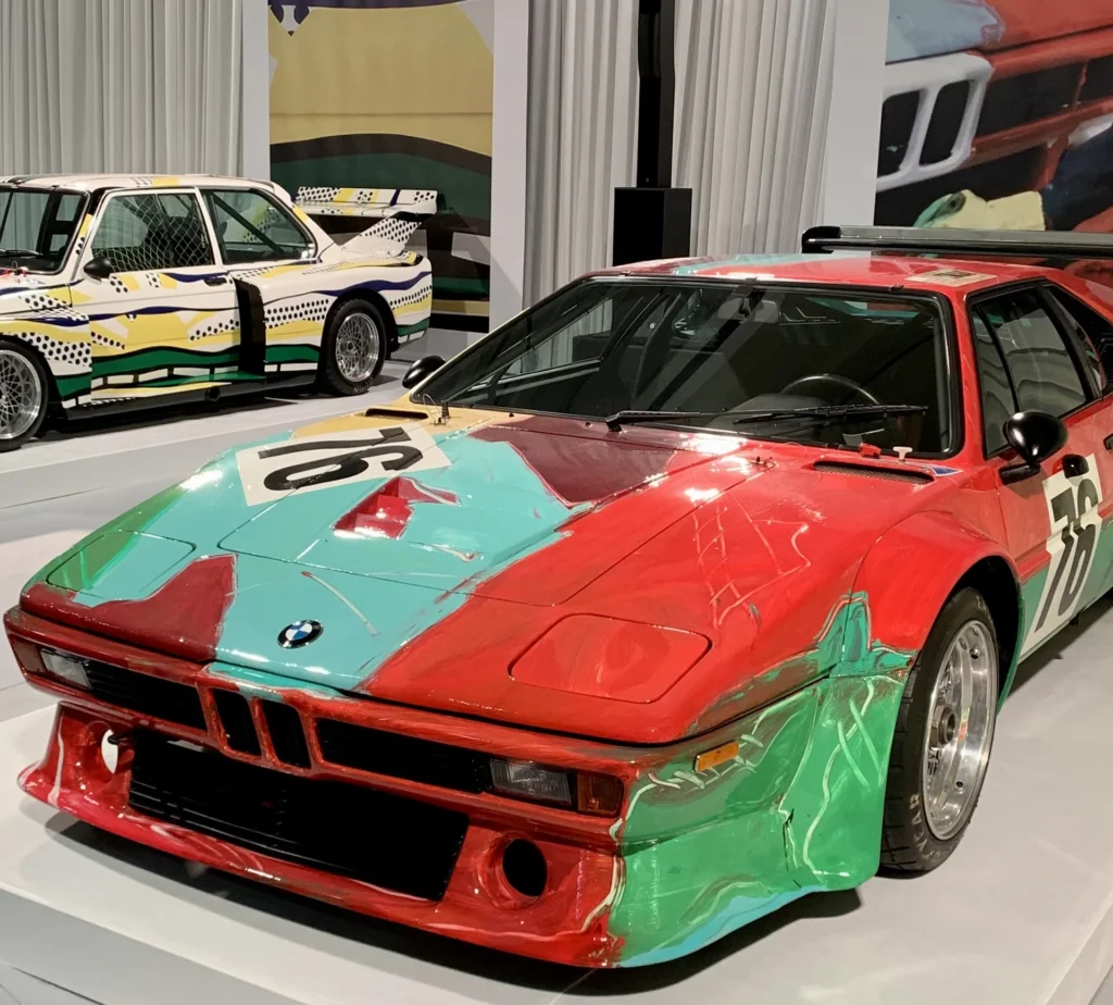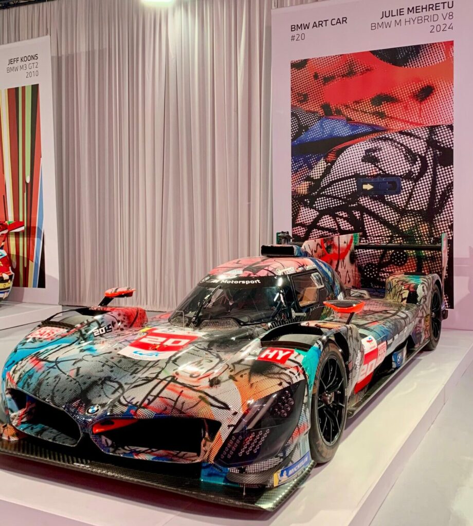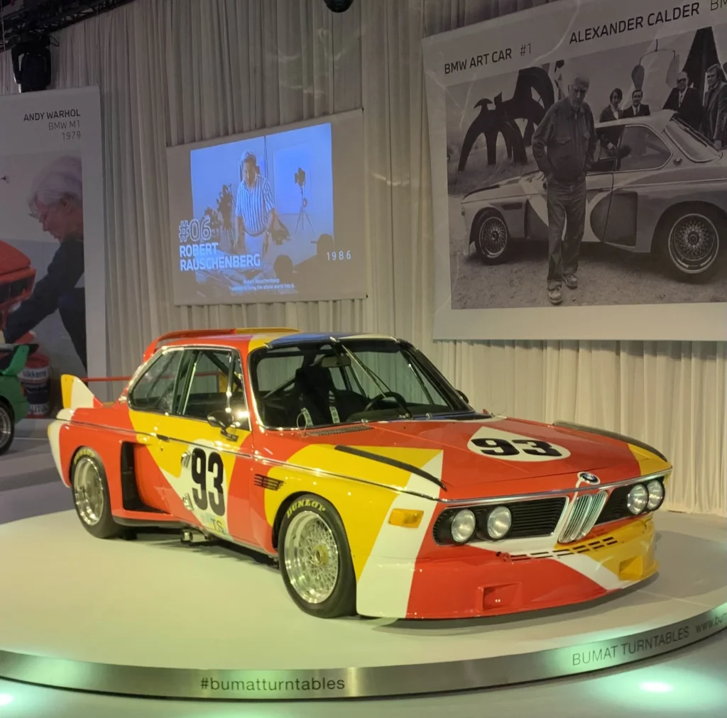 La serie delle BMW Art Cars nasce, senza precedenti storici noti, da un’intuizione tutta francese: fu il pilota e collezionista Hervé Poulain che, nel 1975, chiese all’amico Calder di trasformare la sua auto da corsa prima della 24 Ore di Le Mans. A seguire arrivarono Frank Stella (1976), Roy Lichtenstein (1977) e Andy Warhol (1979), mentre a Rétromobile sono presenti anche le più recenti opere di Jenny Holzer (1999), Jeff Koons (2010) e Julie Mehretu (2024).