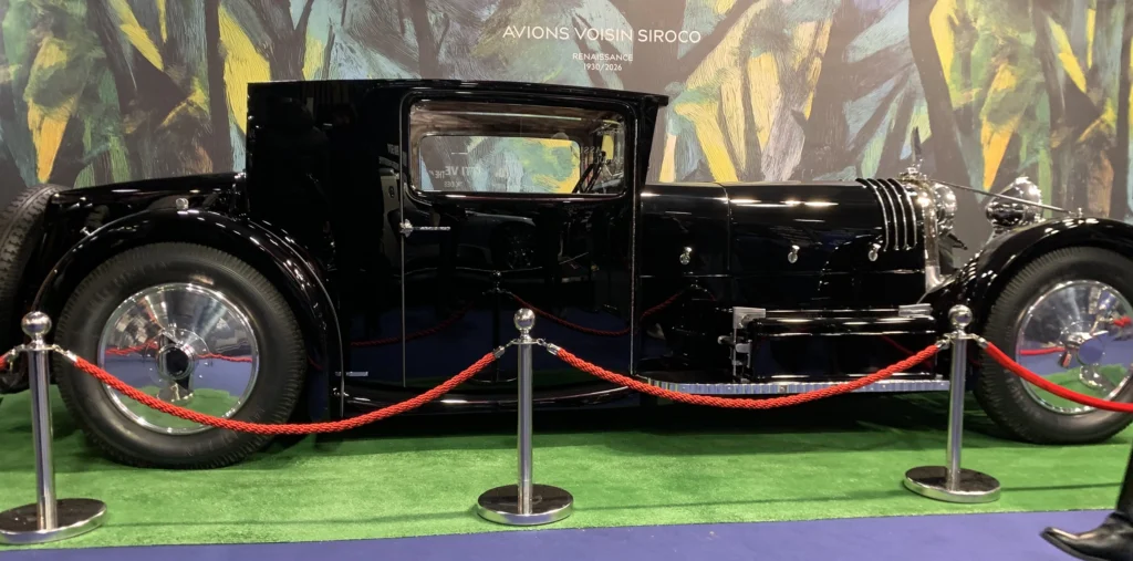 Il primo incontro è con la Avions Voisin c22 Sirocco (1930): un’altra monumentale manifestazione dell’art decò applicata all’automobile, forse la più rigorosa e architettonica delle presenti.