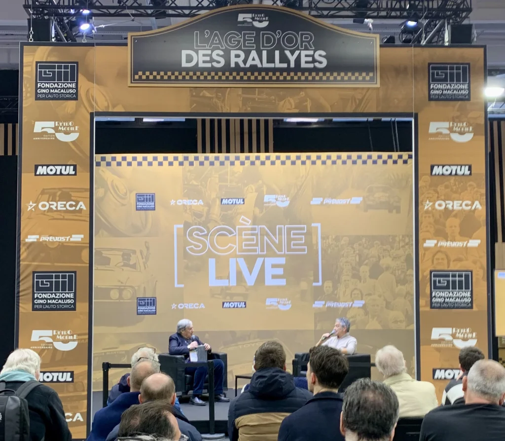 Anche questo evento sarebbe stato benissimo nella già citata galleria (si ricorda il sabbioso allestimento Dakariano del 2024), ma questo format, con l’annesso palco per interventi di grandi nomi del rallye (piloti, navigatori, preparatori, fotografi…), lo rende adatto anche a questa parte di fiera.