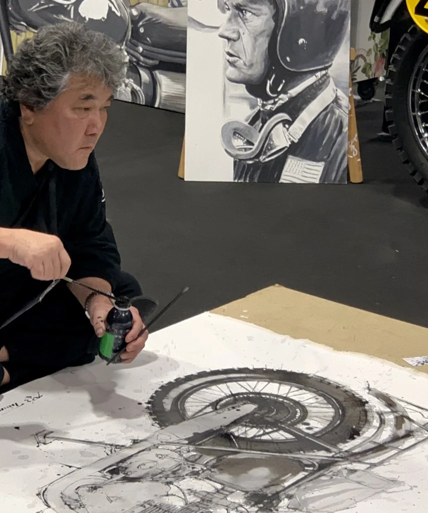 Lato positivo, sono riuscito a cogliere il passaggio nello stand di Makoto Endo, pittore giapponese ospite fisso degli ultimi anni, in una delle sue sessioni di live painting dal pavimento.