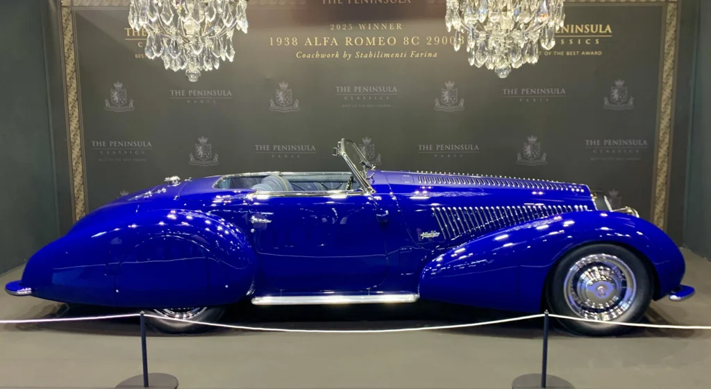 Sempre in questa enclave è inserita l’Alfa Romeo 8C 2900 B Farina del 1939: ambasciatrice dell’asta di Artcurial al Peninsula Hotel Paris e vincitrice del Best of the Best Award dello stesso evento.