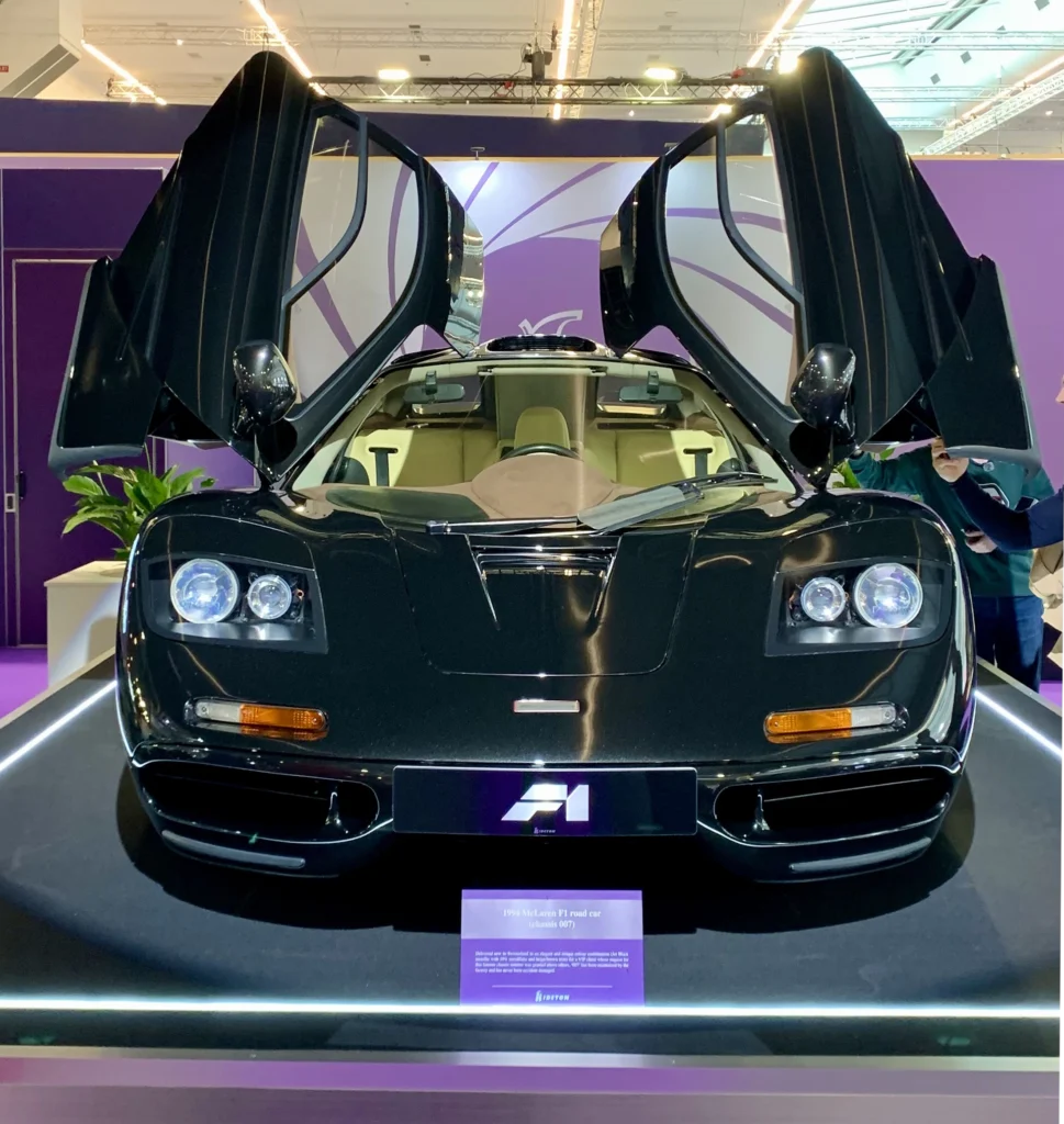 Sullo sfondo, nel mirino, una McLaren F1 di un raro Jet Black Metallic con chassis numero, ça va sans dire, 007 (di 161).