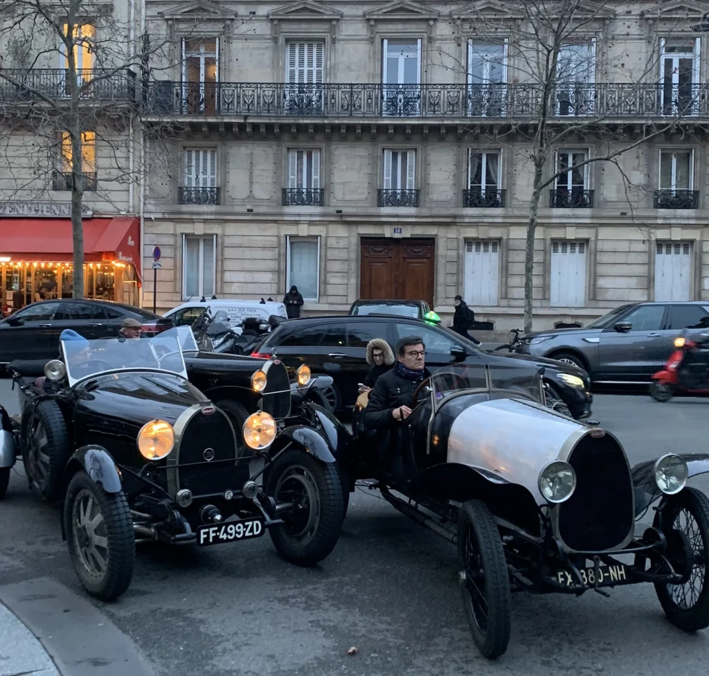 Nota: fuori dall’hotel, hanno organizzato un’escursione celebrativa riunendo modelli Bugatti di tutte le epoche. Spettacolare la parata fotografica sotto l’Arc de Triomphe.